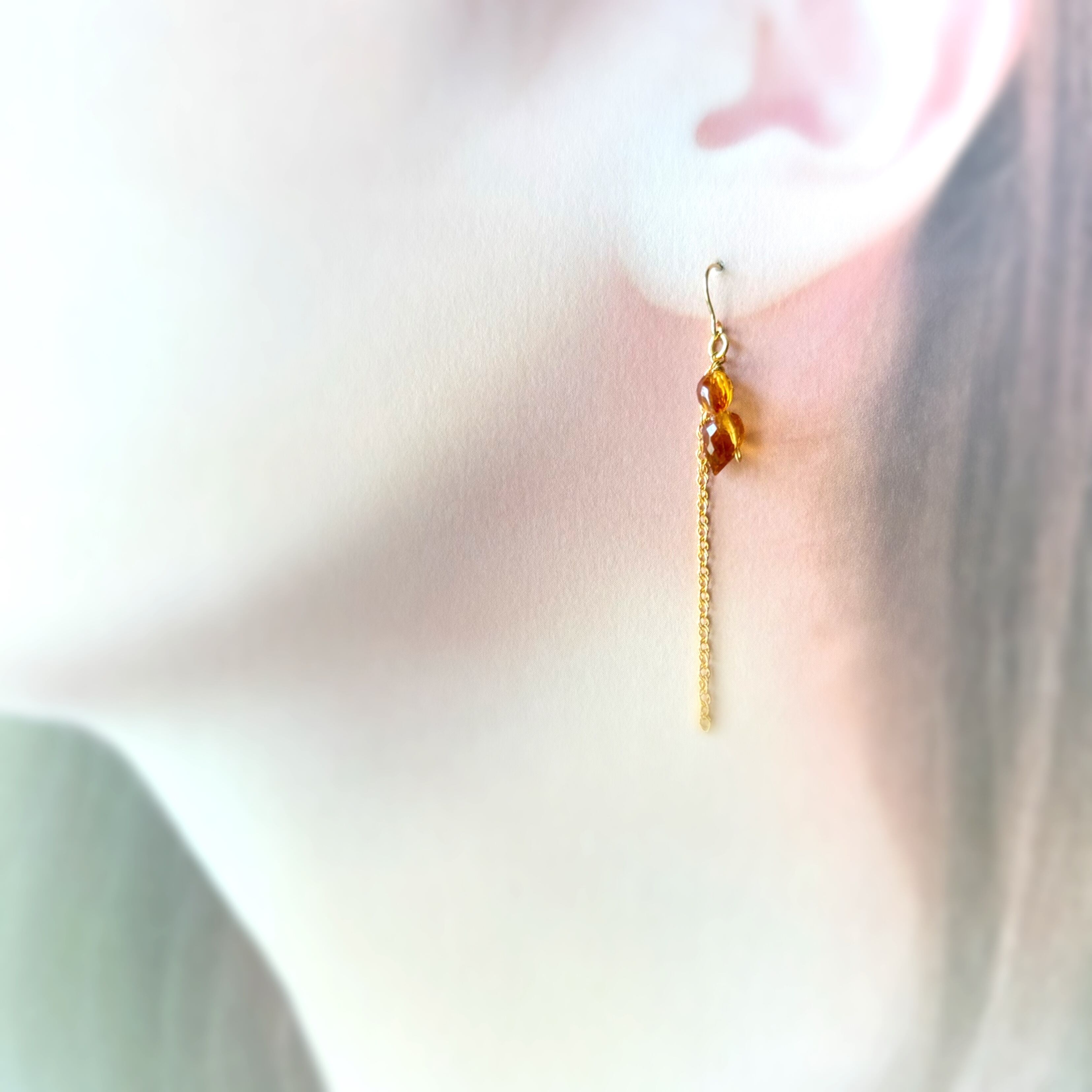 女性の仕事運アップに!! シトリン×14Kgf製チェーンピアス/イヤリング